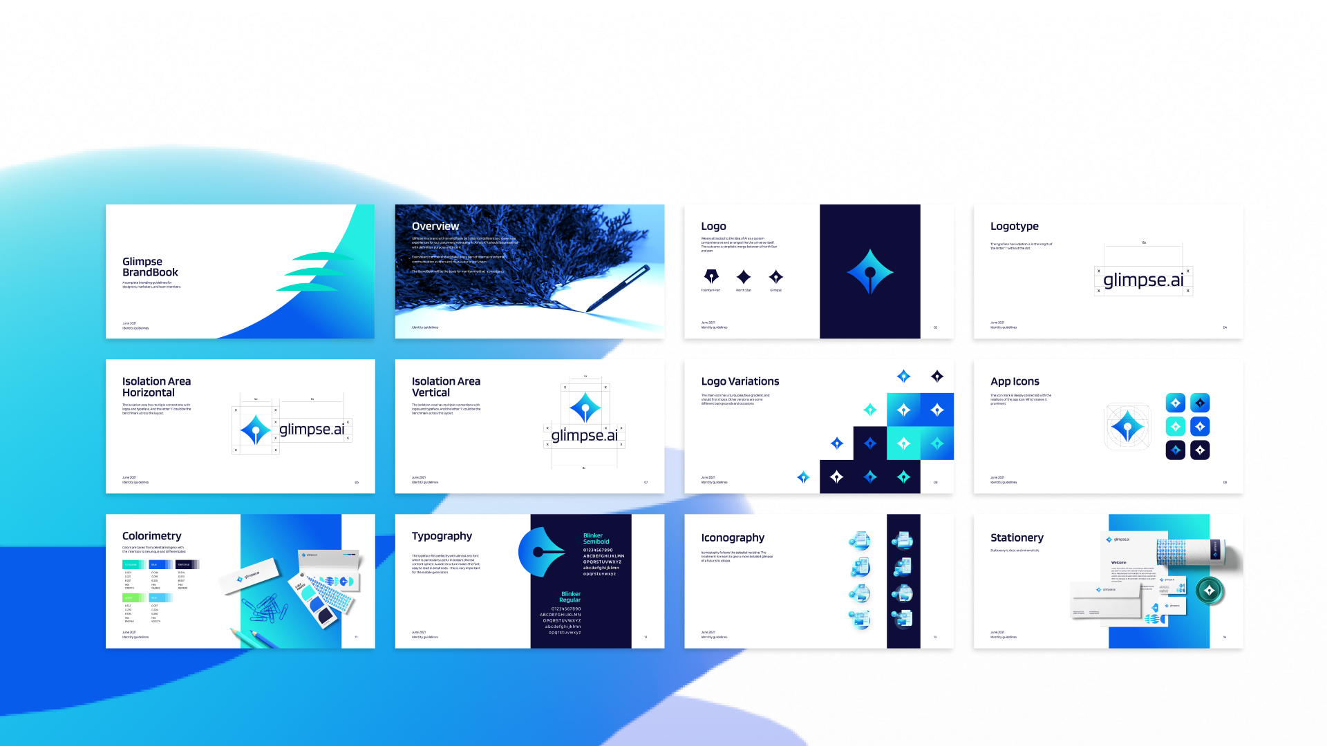 Glimpse brand identity and logo design. Amazing new brand design for our AI SaaS client. Glimpse builds intelligent AI tools to help you write amazing copy.