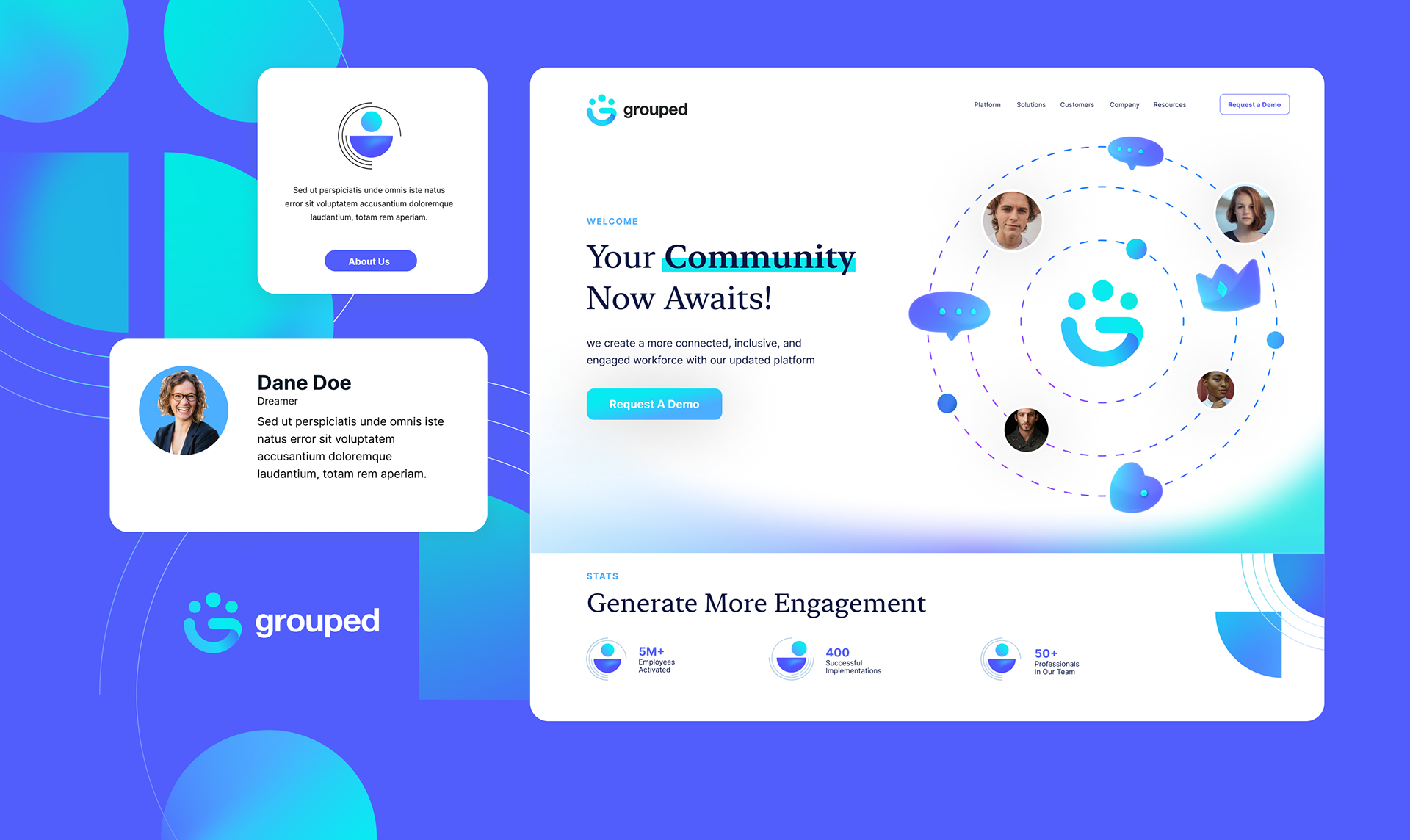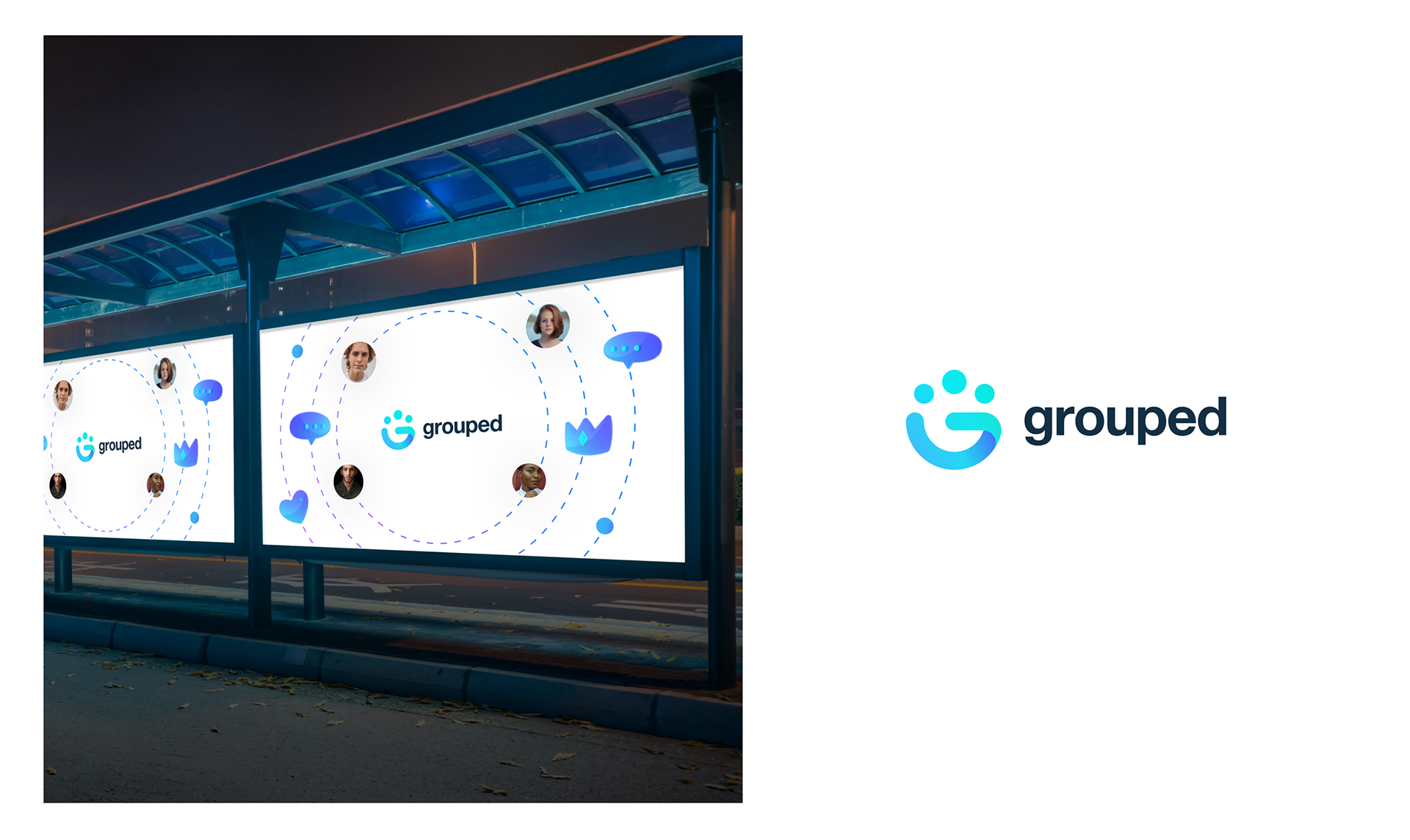 Brand identity and logo design for Grouped. Grouped is a private social networking app designed for leaders to create communities.